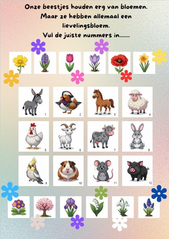 Onze dieren houden erg van bloemen, maar ze hebben allemaal één lievelingsbloem. Weet jij welk dier het meest van welke bloem houdt?